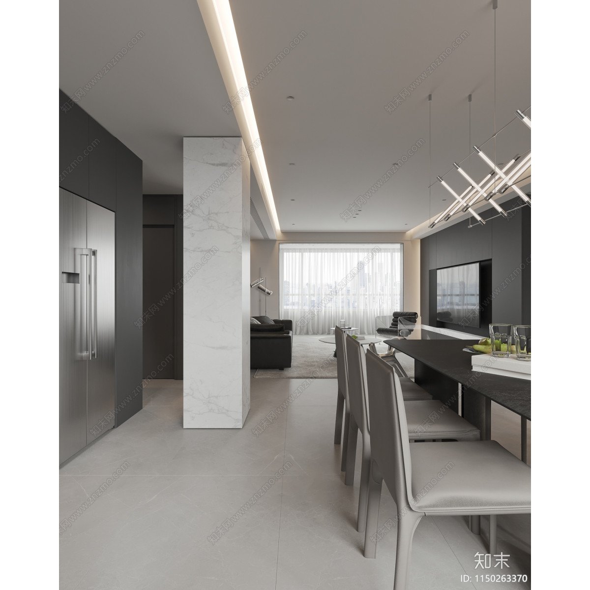 모던 거실 주방 다이닝룸 현관 3d 모델링 소스 3dmax 소스