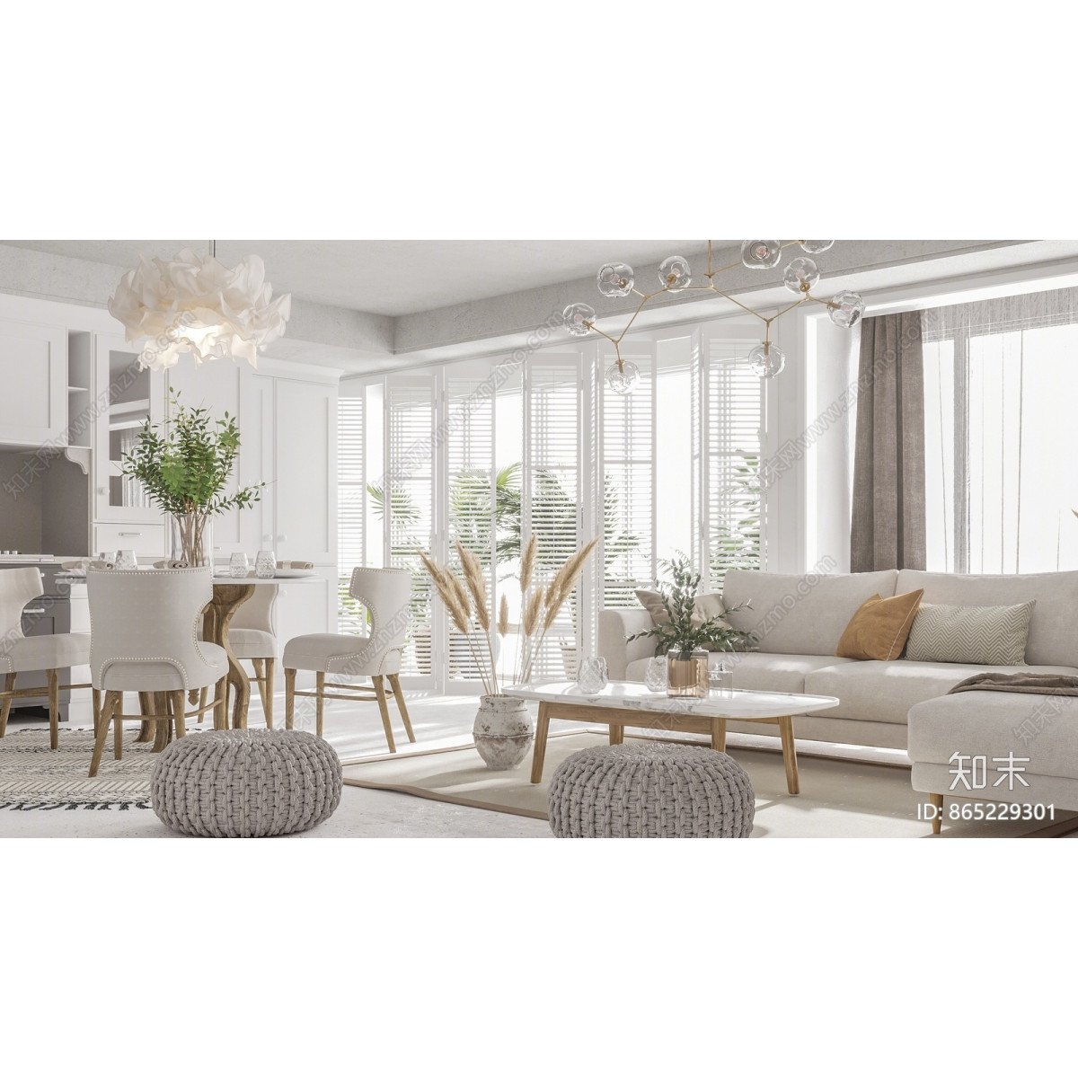 화이트톤 북유럽 거실 다이닝룸 3d 모델링 소스 3dmax 소스