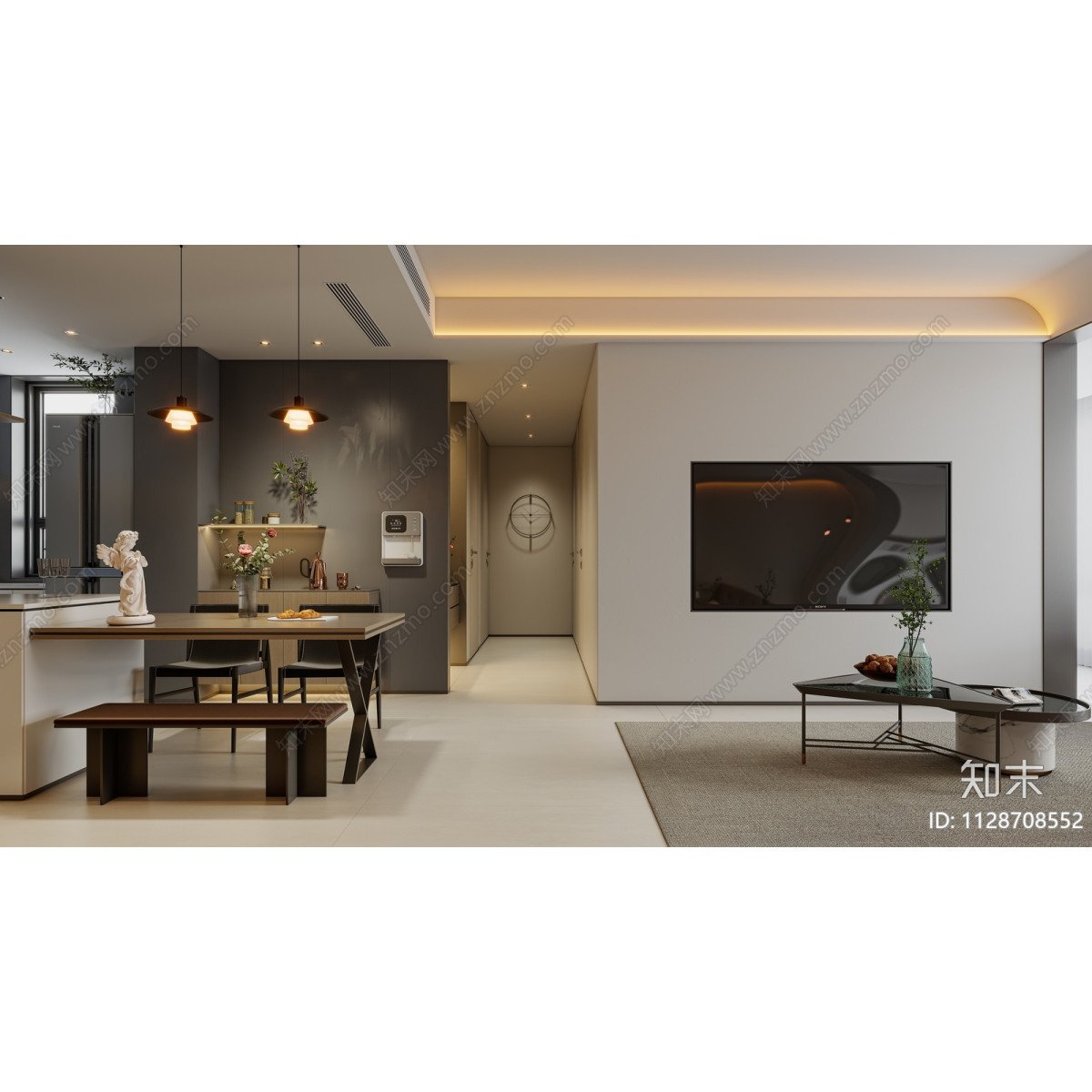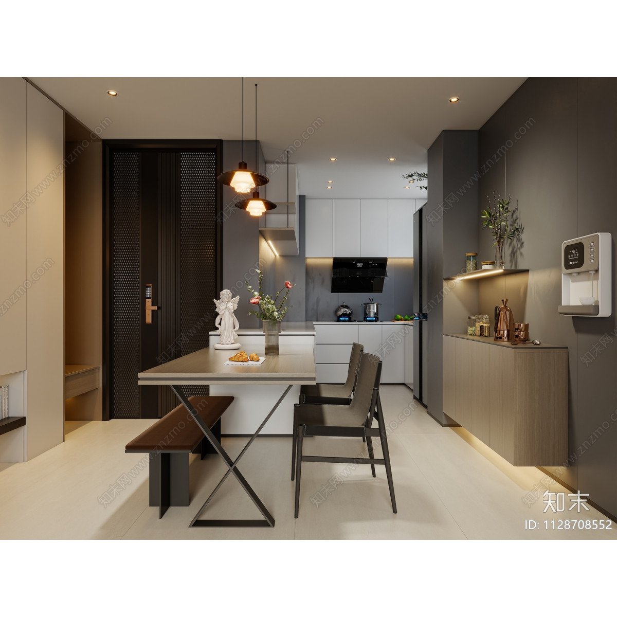 모던 거실 다이닝룸 주방 현관 3d 모델링 소스 3dmax 소스