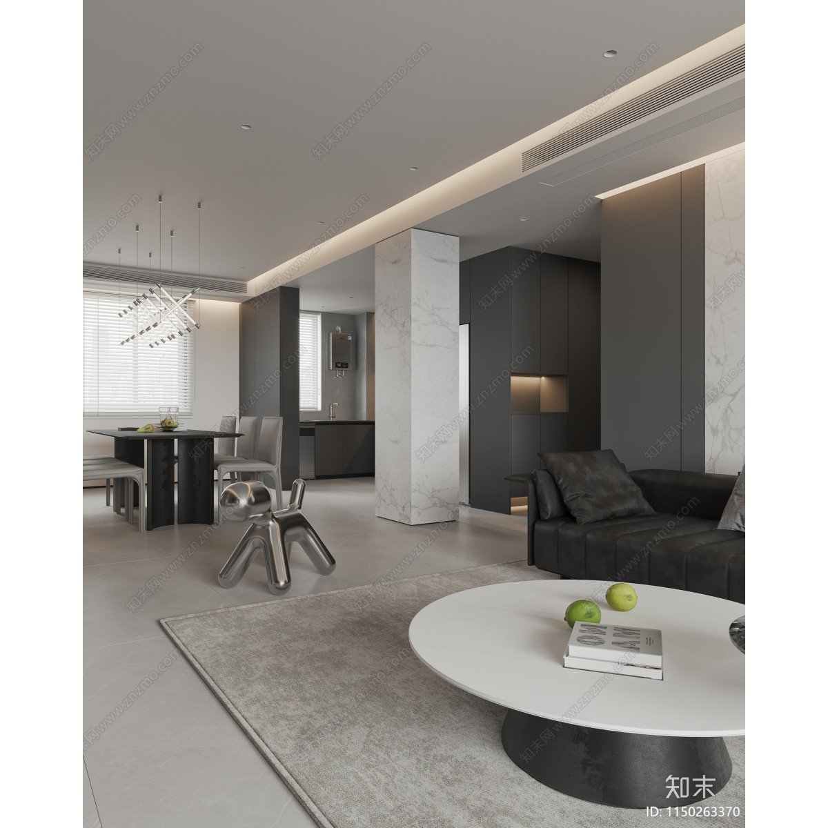 모던 거실 주방 다이닝룸 현관 3d 모델링 소스 3dmax 소스